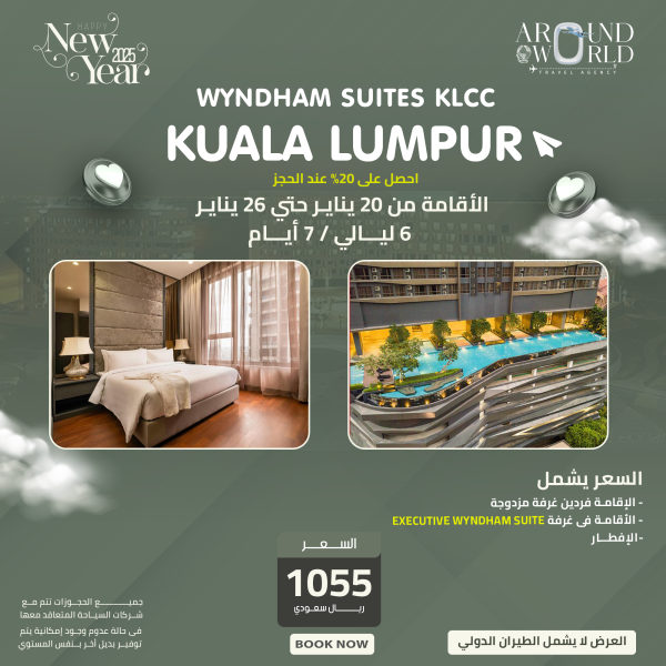 السعر يشمل – الإقامة فردين غرفة مزدوجة – الأقامة في غرفة EXECUTIVE WYNDHAM SUITE – الإفطار