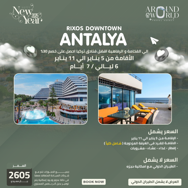 السعر لا يشمل – الطيران الدولي مع امكانية حجزه