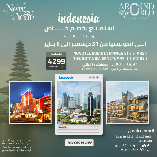جاكرتا : 3 ليالي من 31 ديسمبر الي 3 يناير
