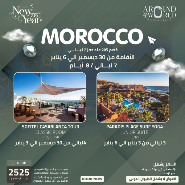 الأقامة من 30 ديسمبر الي 6 يناير 7 ليالي / 8 أيام